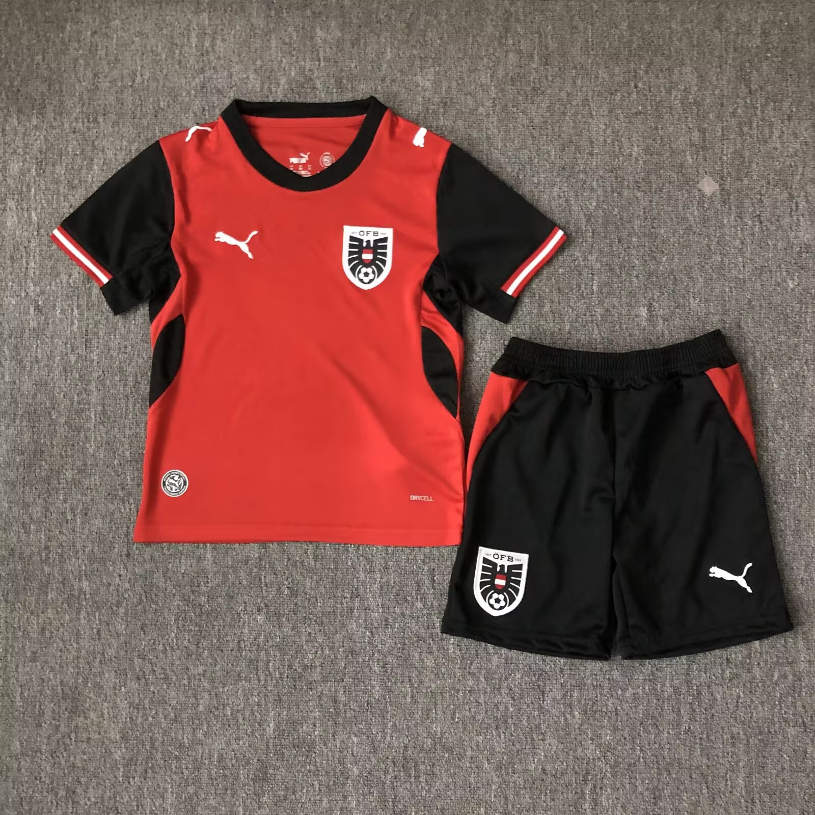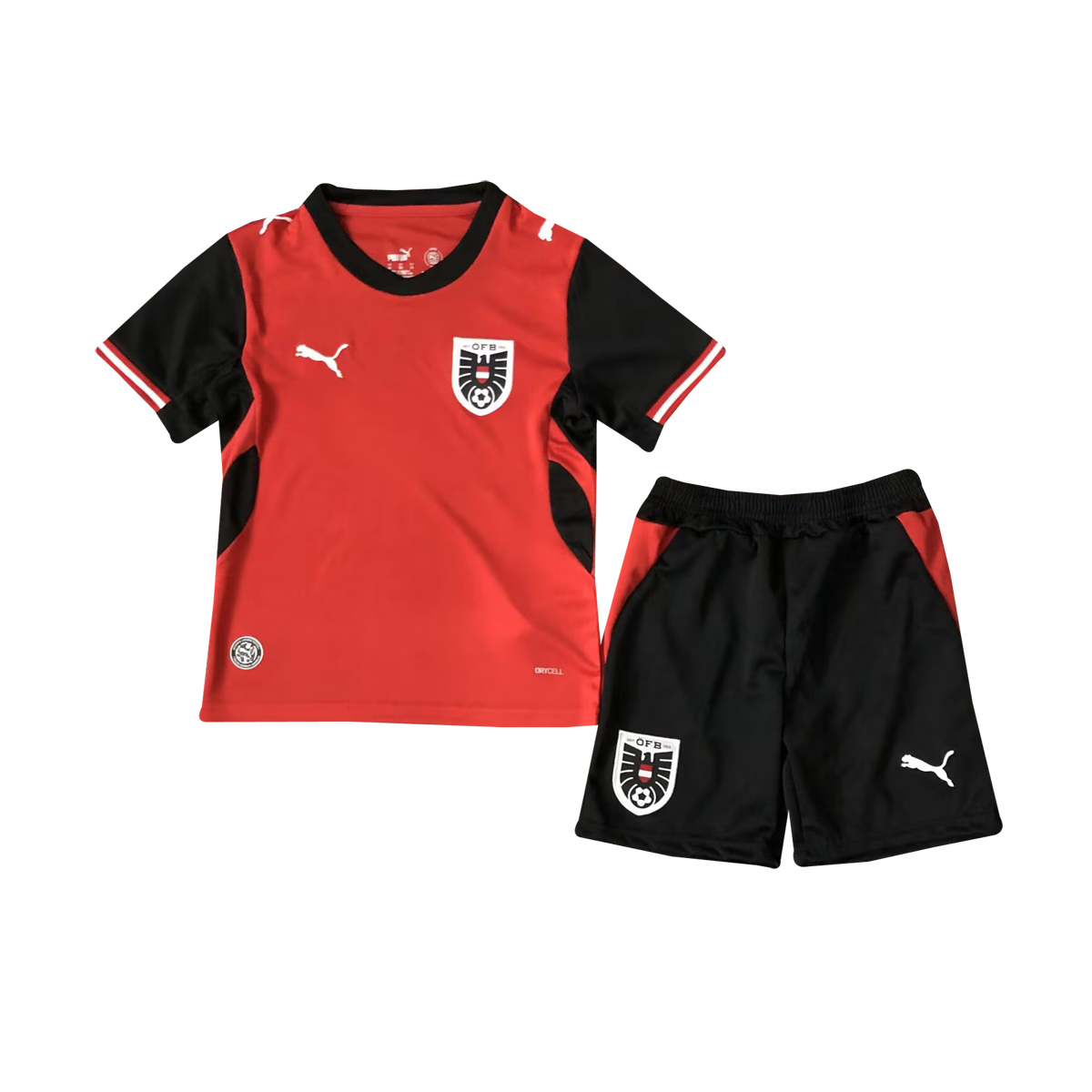 Get your young fan ready for the FIFA World Cup 2026 with the Kids Austria Home Jersey, featuring official team colors and breathable fabric for comfort.