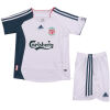 The Kids Retro Liverpool Away Jersey 2006/08 offers a nostalgic touch for young fans, replicating the iconic design with vibrant colors and authentic detailing.