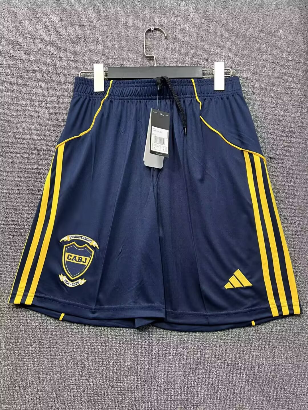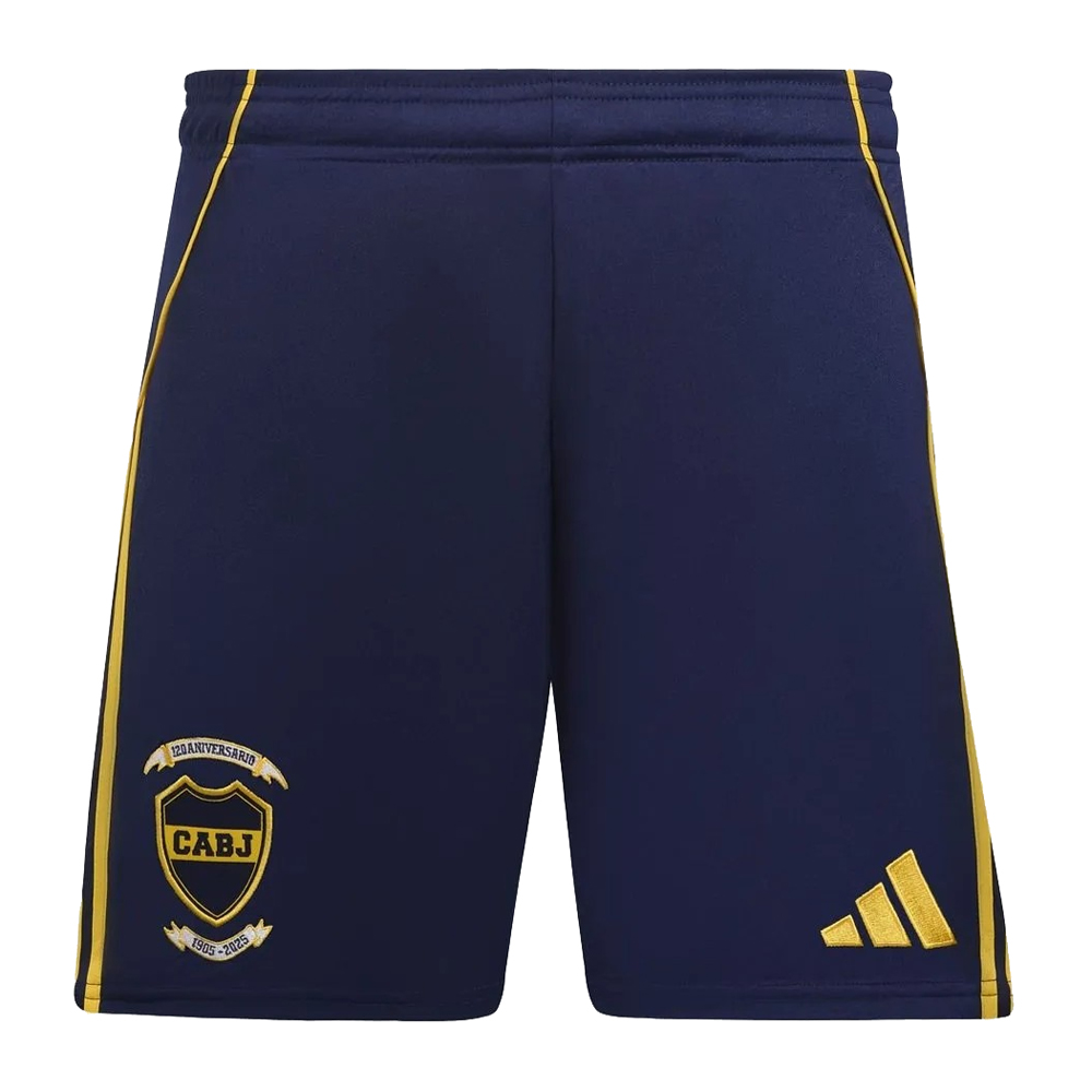 Official Boca Juniors Home Shorts for the 2025/26 season, featuring breathable fabric, iconic blue and yellow colors, and club crest for ultimate fan gear.