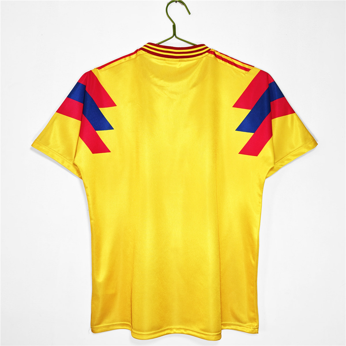 Relive the 90s with the Men’s Colombia Retro Home Jersey 1990, featuring iconic vibrant yellow, traditional red and blue accents, and classic style details.