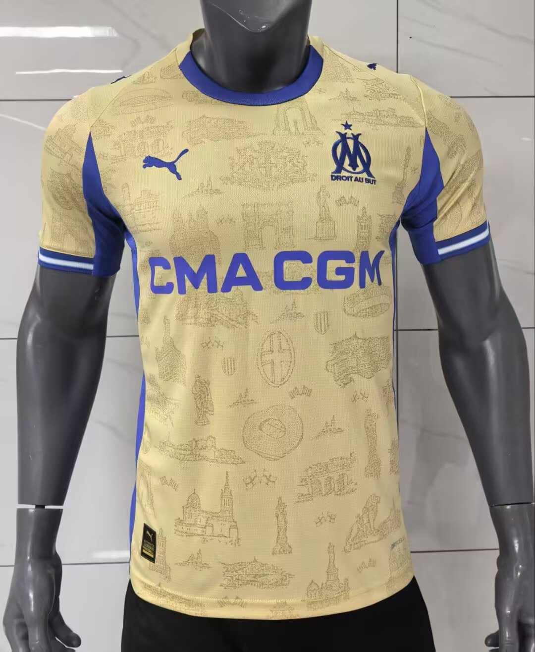 The Mens Olympique Marseille Fourth Jersey 2025/26 features a sleek design with bold blue and white accents, celebrating team spirit and modern style.