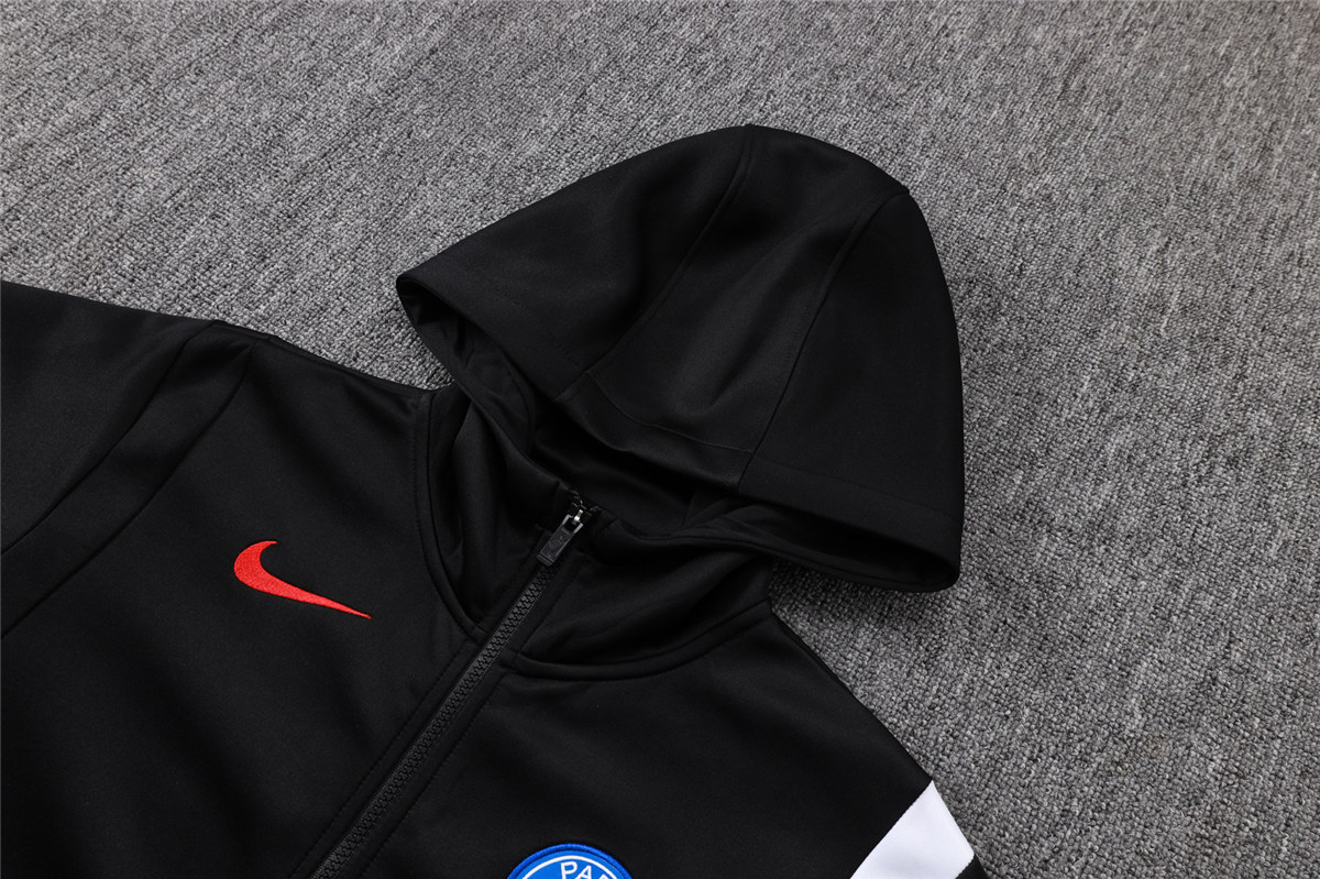 Stay stylish and comfortable with the Mens PSG Hoodie Jacket + Pants Training Suit in black, perfect for the 2025/26 season. Ideal for everyday wear or training.